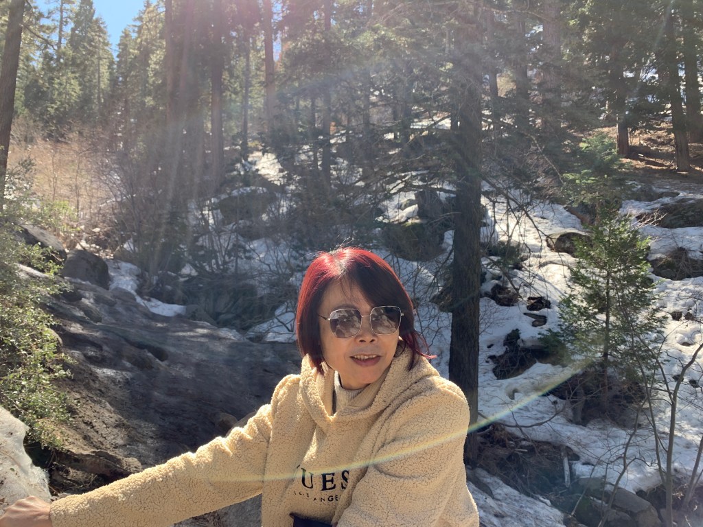 所以!我跟阿母來到當初很想去探索的Big Bear Lake,住在沒有訊號的森林小木屋,在湖邊發呆了一個早上後,再一起來一場雪地健行大冒險。