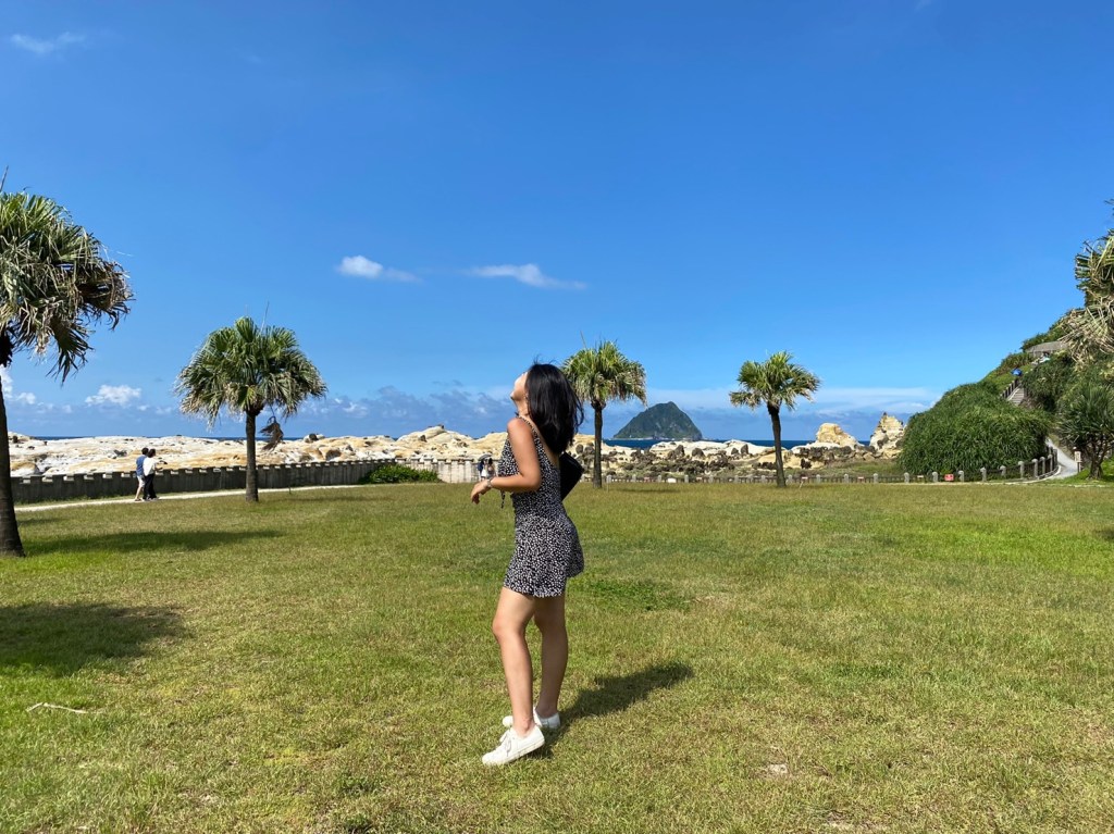 其實和平島上有個小小的環狀步道,也可以步行到等嶼亭瞭望整片海,也可以順便看看和平島上各式各樣奇特的岩石(聽說有十大奇岩,有興趣也可以參加深度島覽行程),其實真的蠻美的!但由於耍廢實在太舒服,我們就待在草皮上鬼混了好一下子。