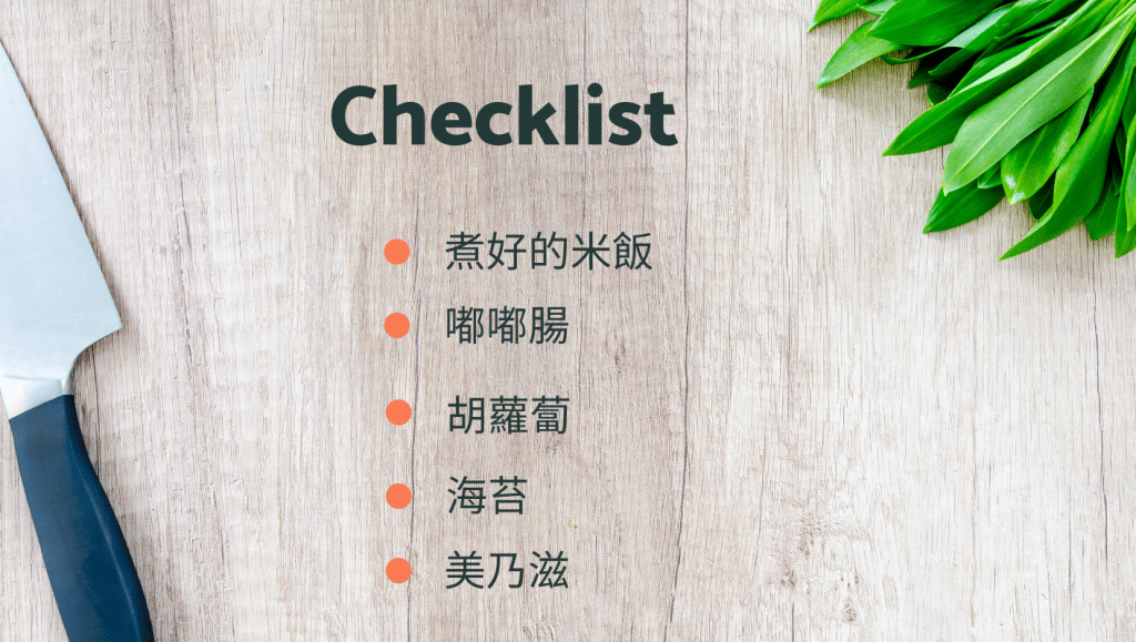 嘟嘟腸也可以改成熱狗等一切紅色的食材,但因為飯糰本身就是飯,所以買了蒜味的嘟嘟腸,添加一些風味。