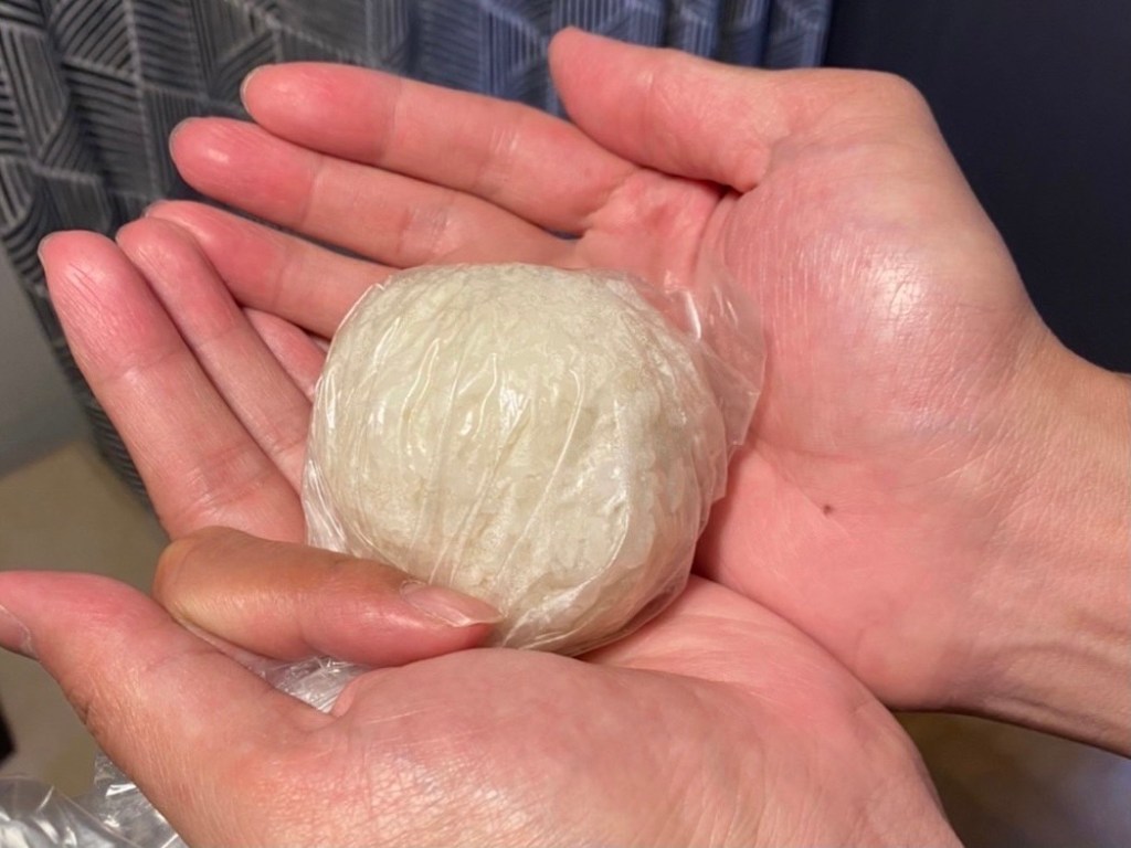 拿一個乾淨的食物袋,抓一口飯揉成飯糰,記得要盡量壓緊一點,飯糰就會成形,最喜歡揉飯糰因為很好玩哈哈哈!