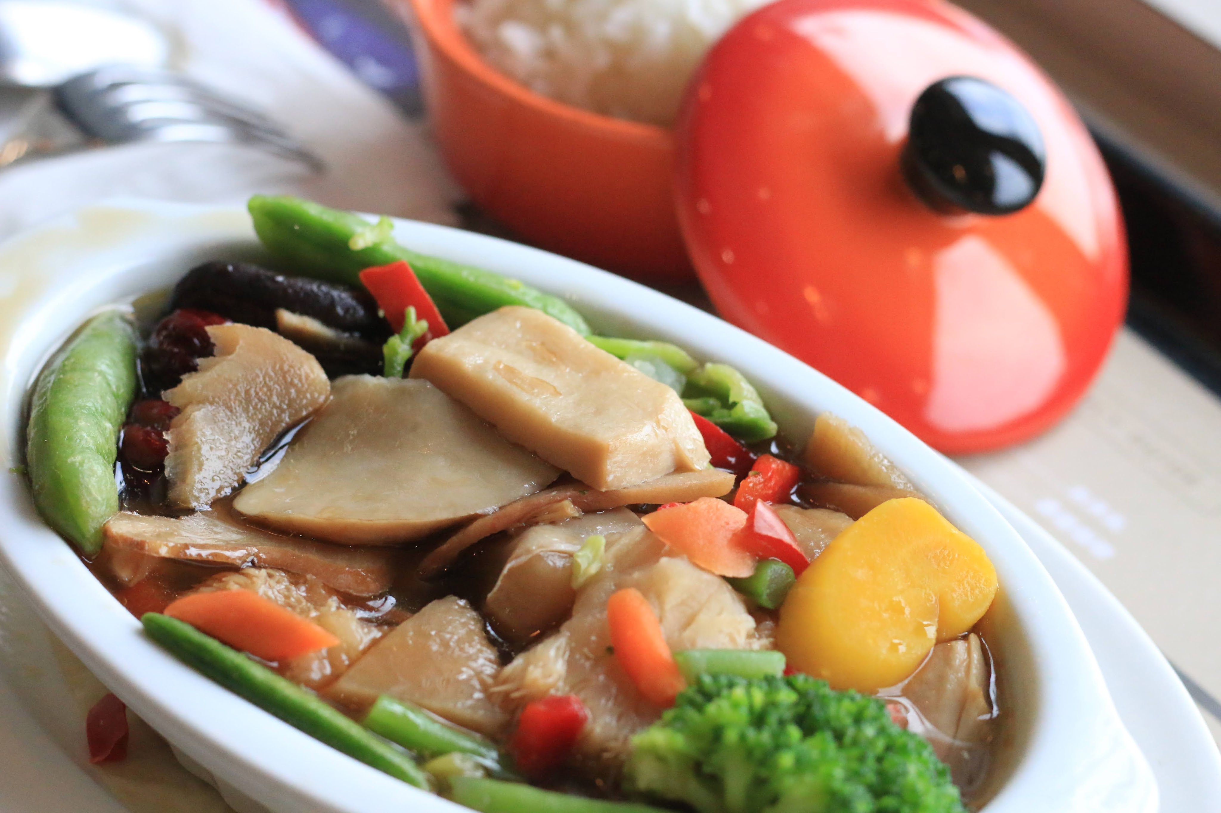 另外猴頭菇其實是蠻酷的食材,而且本身帶有苦味,《西雅圖極品咖啡》倒是將食材處理得很好,猴頭菇吃起來十分Q彈可口,而且蔬菜及菇類非常豐盛,再搭配一碗小丘般白飯,吃得很滿足!
