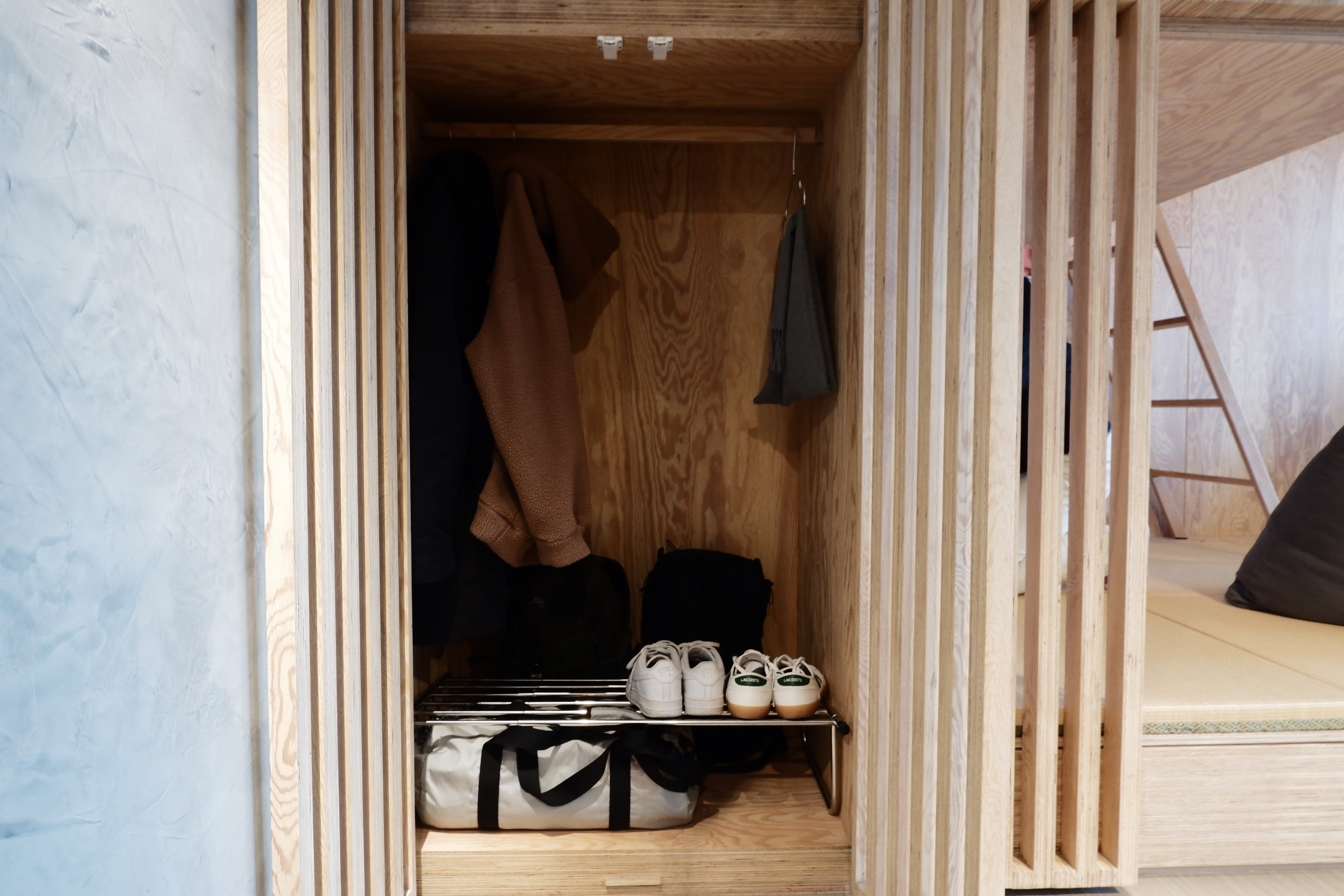 裡頭很貼心附有可以吊外套的衣架,行李塞在裡頭,整個房間就不會亂了。