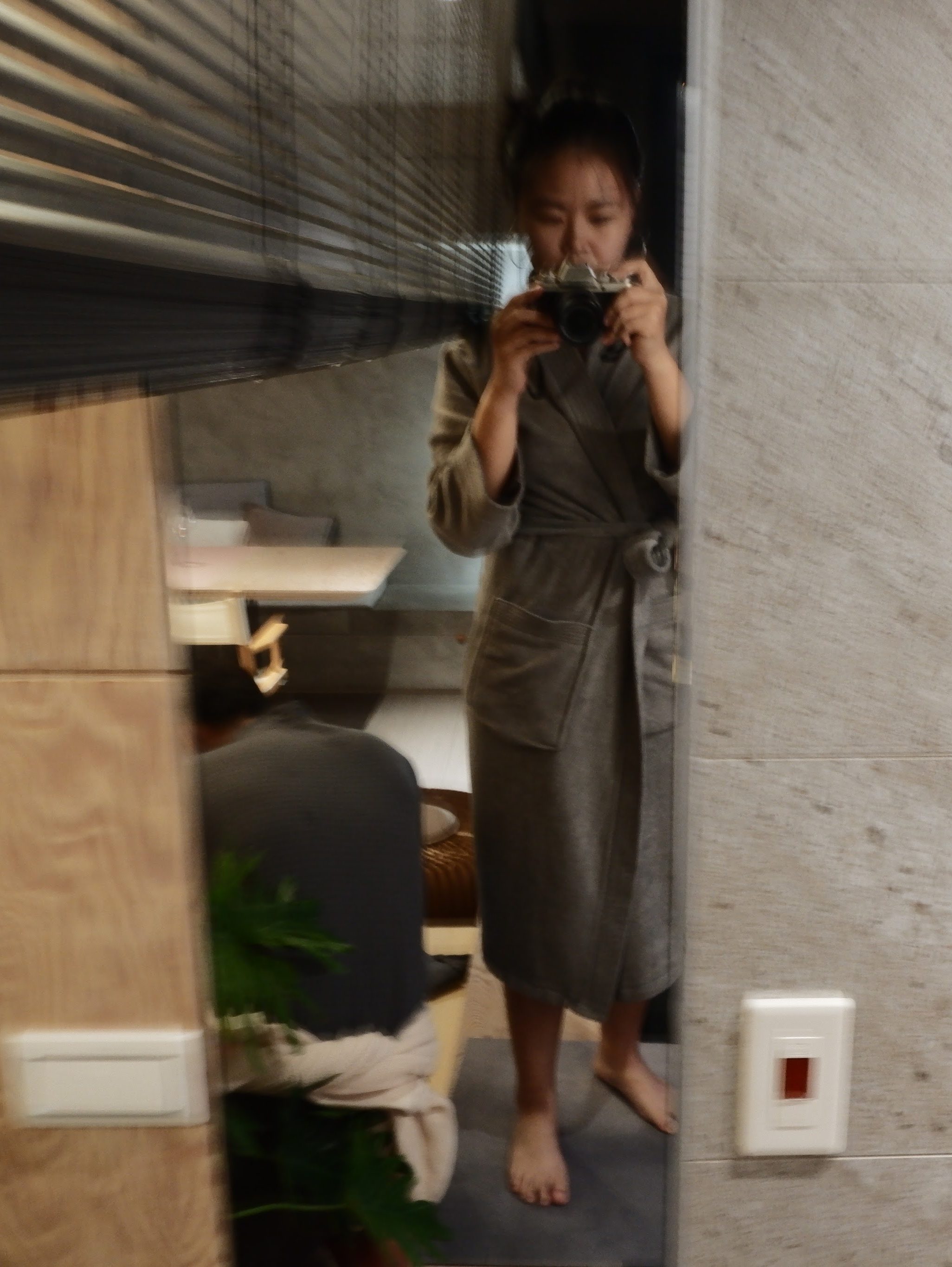 祭出福利送上亮哥太舒服直接睡著的泡湯照(興奮到模糊)!這邊的泡湯池是地熱溫泉,超~級~舒~服~泡完之後皮膚會古溜古溜,但還是要注意泡一下子,就要起來休息一下;泡湯池前方有片珪藻土踏墊,除了吸水外也防止滑倒。