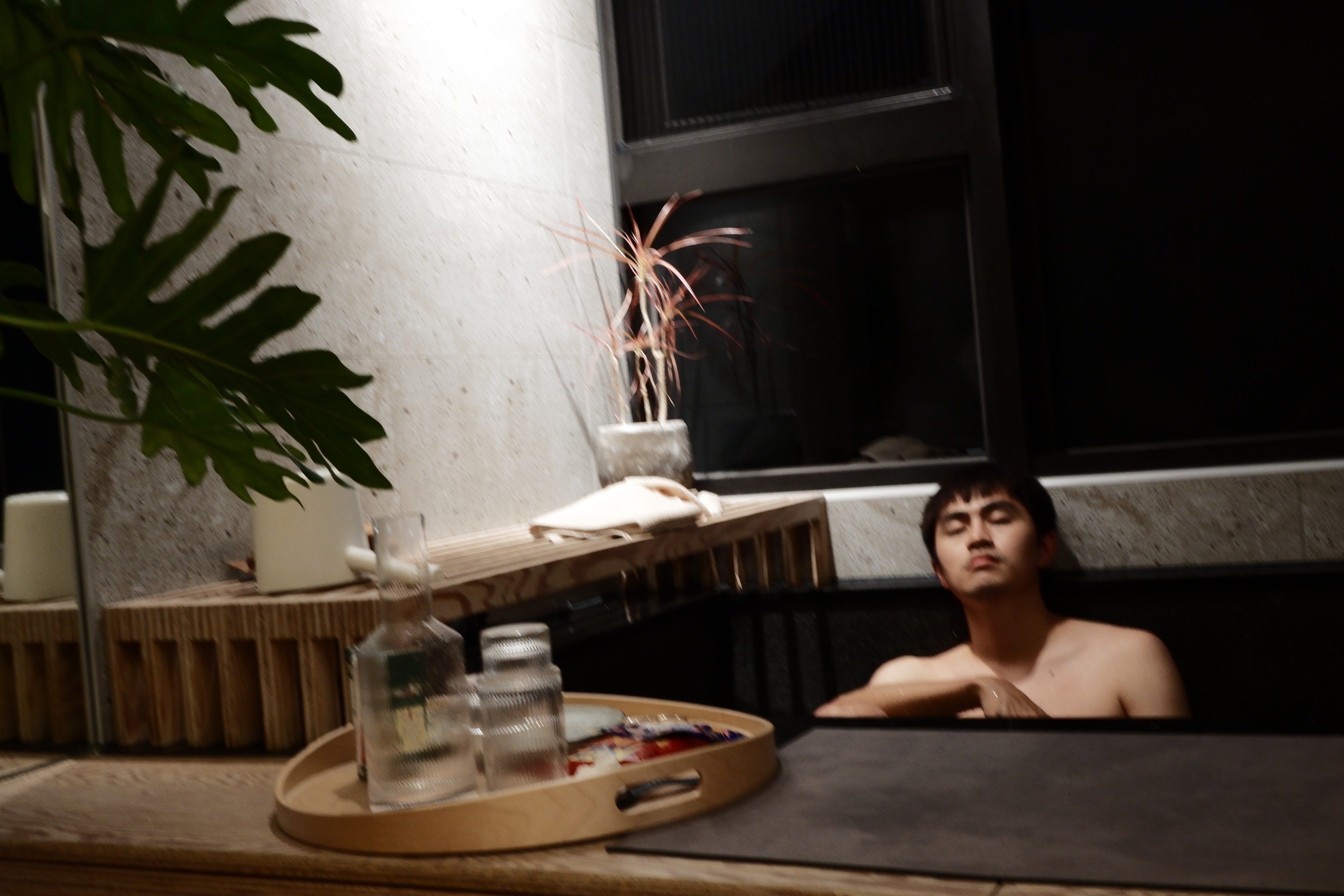 最初是在Instagram上發現《易居》的存在,就深深被吸引;後來知道是在Airbnb上才有的房源,且屋主本身就是設計師,難怪整個房間對於燈光、家具、收納,甚至是擺飾等細節,可說是相當講究;其中最令人著迷的,無非就是屋內的地熱溫泉池,可以隨時享受泡湯。