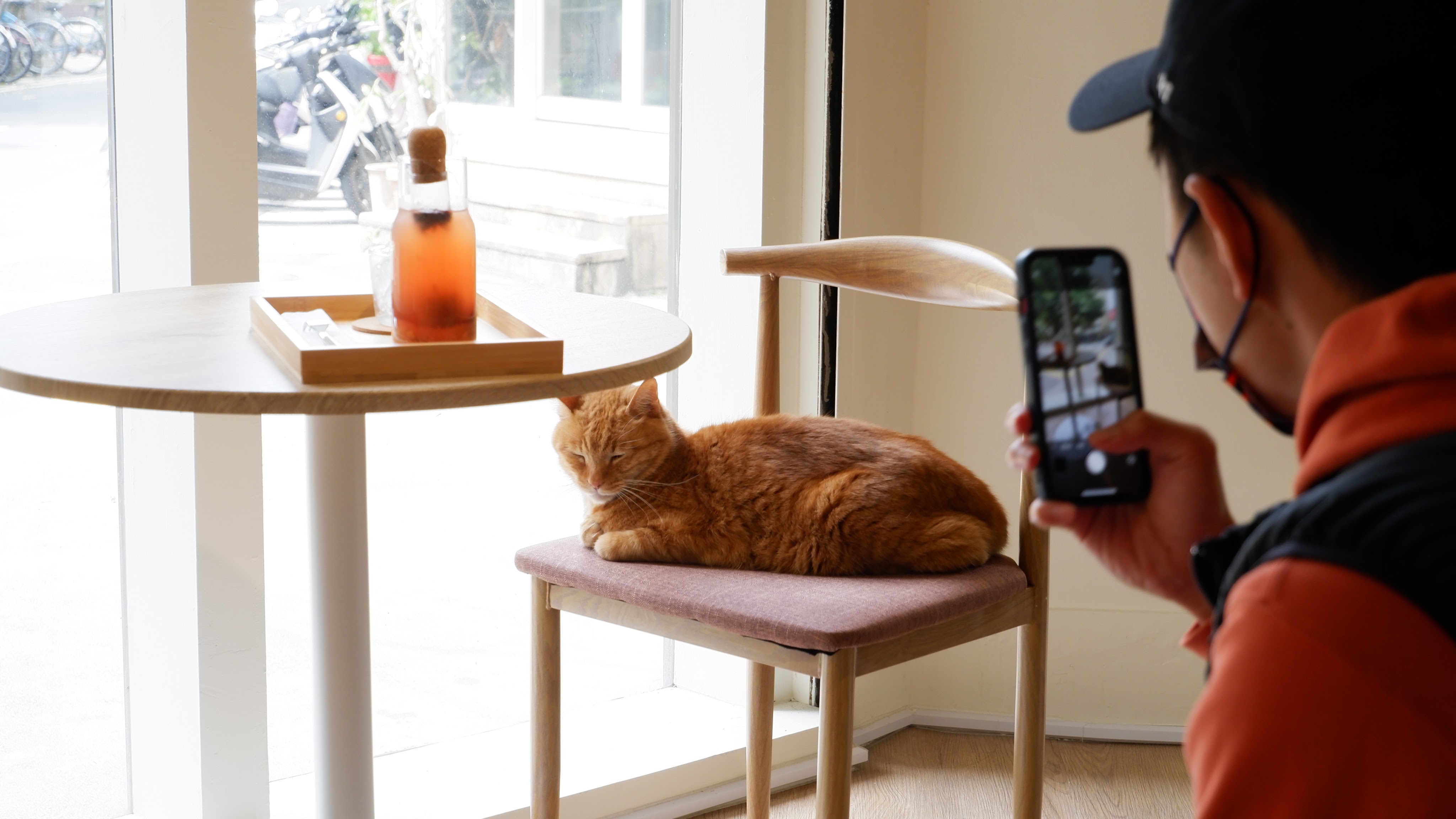喜歡大片落地窗的我,這次沒有選擇這個陽光灑落、採光極佳的位置,最主要的原因就是這隻可愛的浪浪店貓—小橘,眷戀著陽光、霸佔著座位;但被可愛萌死的我們,甘願讓給它。