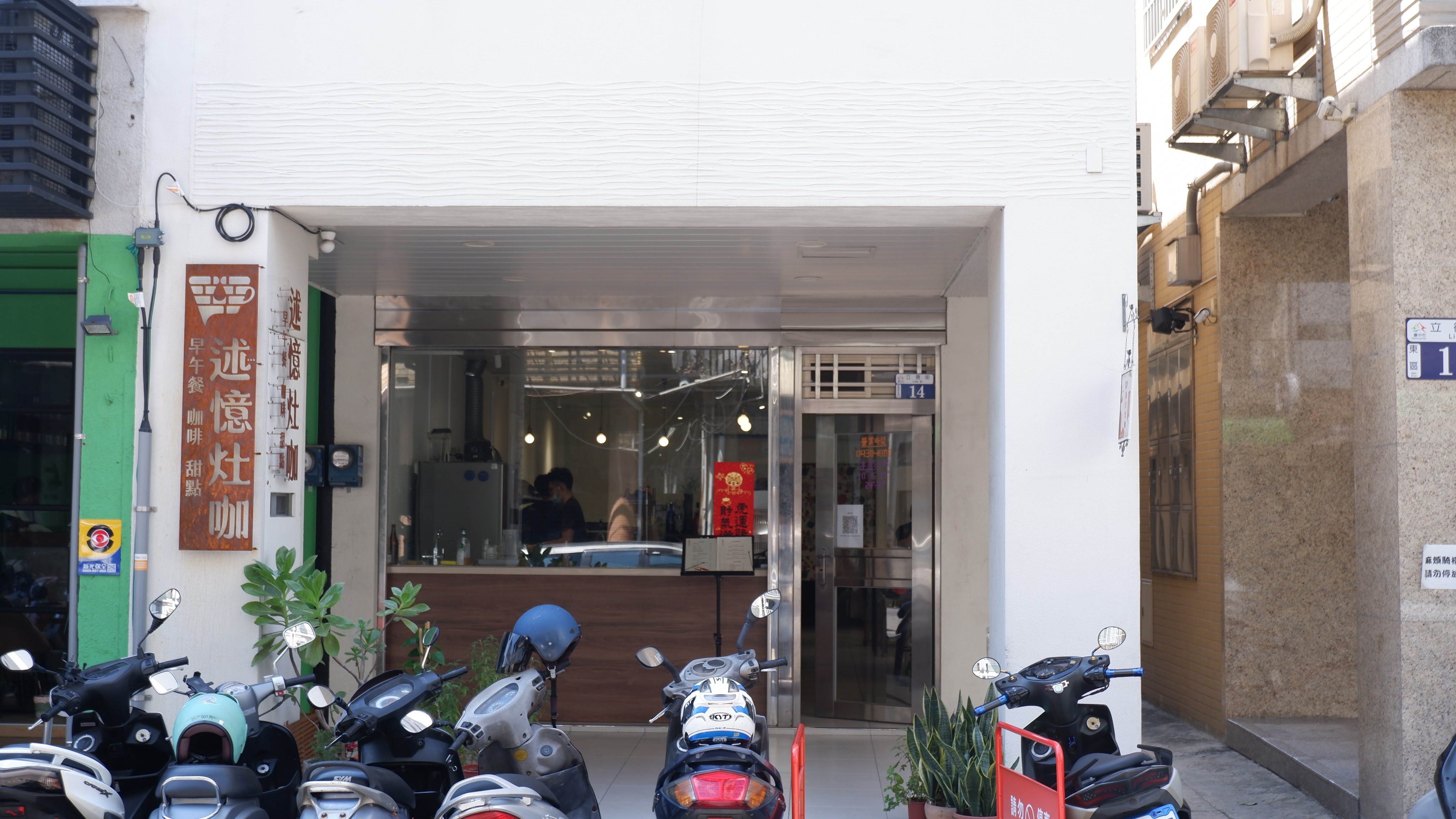 《述憶灶咖》就在台中火車站舊後站商圈,新時代百貨步行五分鐘的立德街上,在招牌林立的街道上,《述憶灶咖》並不難找!整間店外觀以白色為主,紅磚復古的招牌則很有「灶咖」的味道,給人樸實溫暖的感覺;交通方式以機車來說,稍微繞一下就可以找到位置,至於汽車就建議要參考附近的停車場。