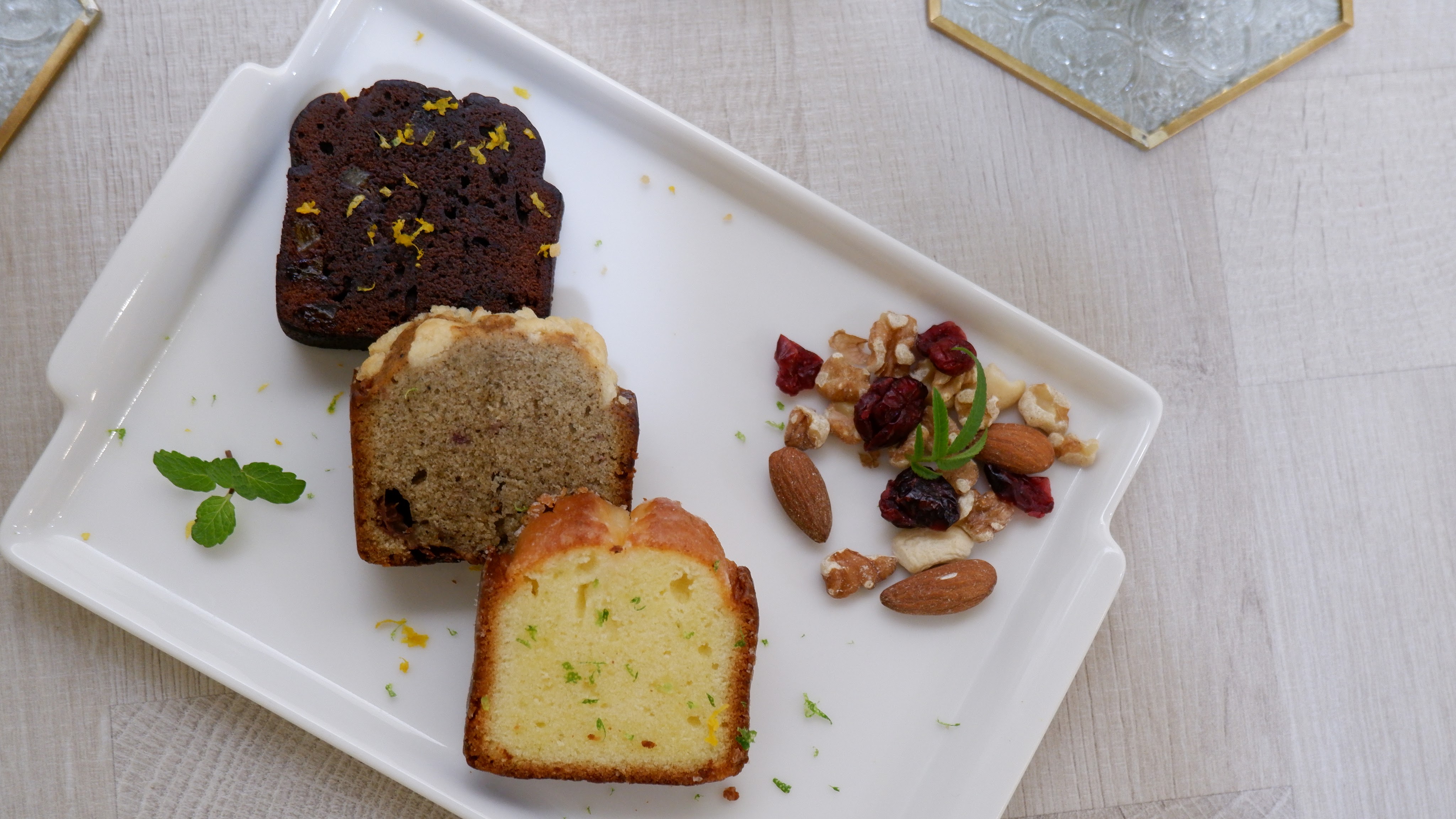 店內另一種特色的甜點就是樸實無華的「磅蛋糕」;這次我們點了三種口味都嘗試看看,由下而上分別是檸檬、紅玉莓果以及甘曼怡橙皮可可。我最喜歡可可口味,一口咬下橙皮味是沒有在讓的,相當入味,融在可可基底裡,吃起來很有層次,一片根本不夠很想直接上官網怒訂整條!