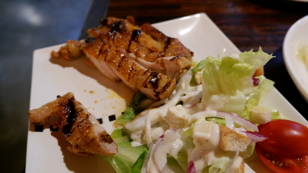 雞腿現烤需要稍等,容我解釋這個美式烤雞腿一上菜,我兩就立馬食指大動,所以中間才少兩塊(笑),雞腿鮮嫩美味搭配油醋的醬汁,中和掉油膩的感受。附餐的新鮮沙拉,讓整道菜清爽許多!