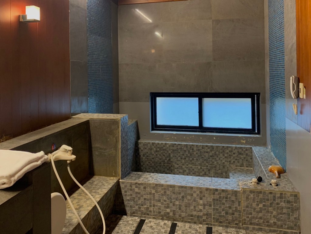 從露營區出發開車大概20分鐘就會抵達金山溫泉區,那邊超多選擇;而我們選擇有兩人獨立湯屋的《沐舍溫泉渡假酒店》,而且停車場超大一個,完全不用找車位,讚!雖然湯屋裝潢確實比較舊,但整體很不錯CP值高,兩人獨立湯屋一小時才$700元,尤其溫泉是海底硫磺鹽泉,非常舒服且有益身體,但要注意不要搓揉,不然會去太多角質導致皮膚很乾。