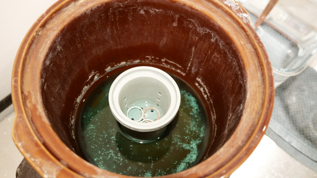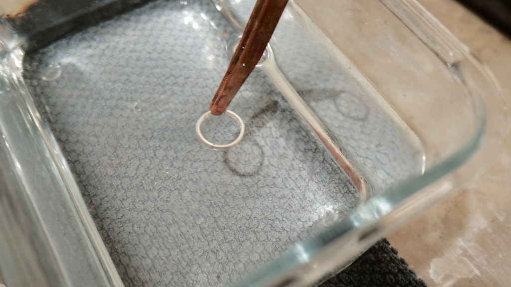 焊接完要將戒指丟入酸性爐內泡一下,去除戒指上焊接的痕跡。