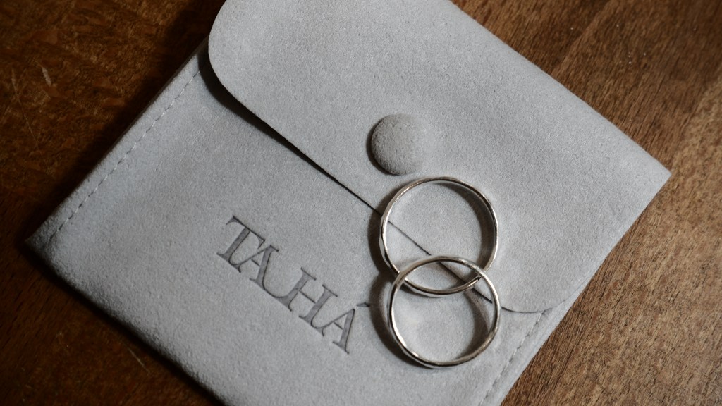 拋光結束的銀戒真的閃閃發光,超級美!《慢學金工實驗室 TAUHÁ Studio》會提供超質感的絨布收納袋跟拭銀布,讓我們好好保護、珍藏屬於我們的戒指。