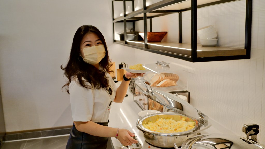 快樂地醒來後最期待的就是—吃早餐!多虧了萬豪金卡會員,讓我可以免費吃到住飯店最期待的自助式早餐,找了一下Club Lounge就位在一樓大廳附近,進去的時候會有工作人員確認房號。