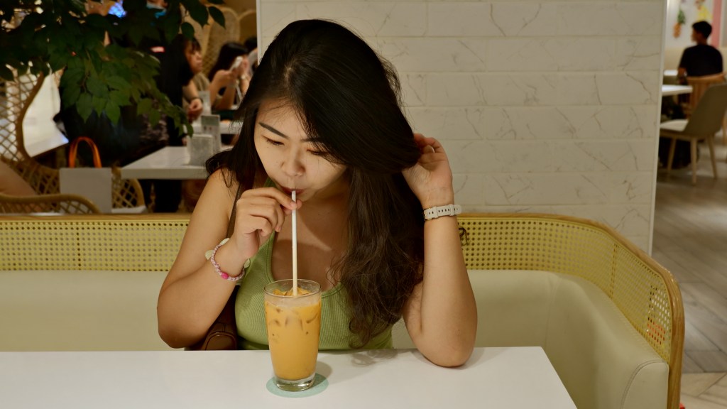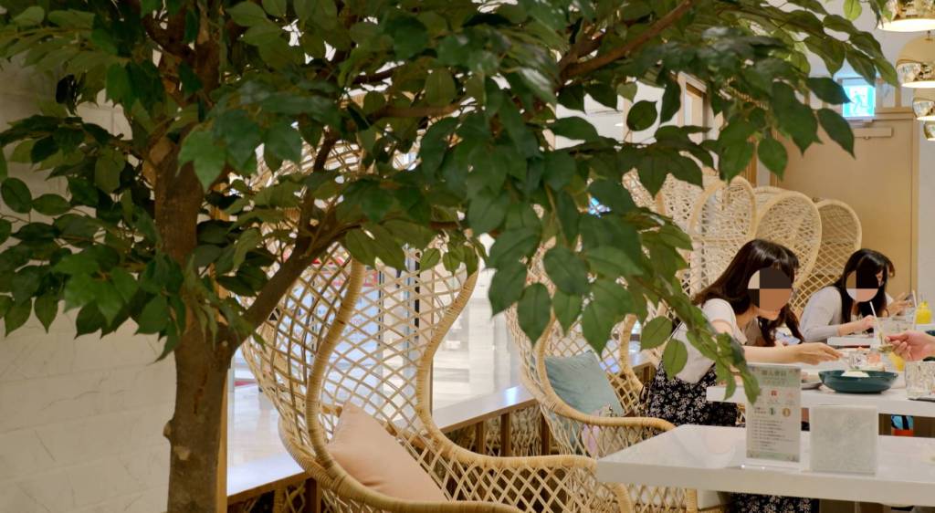 還有還有,不管來幾次都會被這超夢幻的唯美手工藤編孔雀椅給吸住眼球,坐在這個座位區彷彿一秒到泰國高級渡假villa用餐!整間店也是滿滿的人,強烈建議大家事先線上訂位。