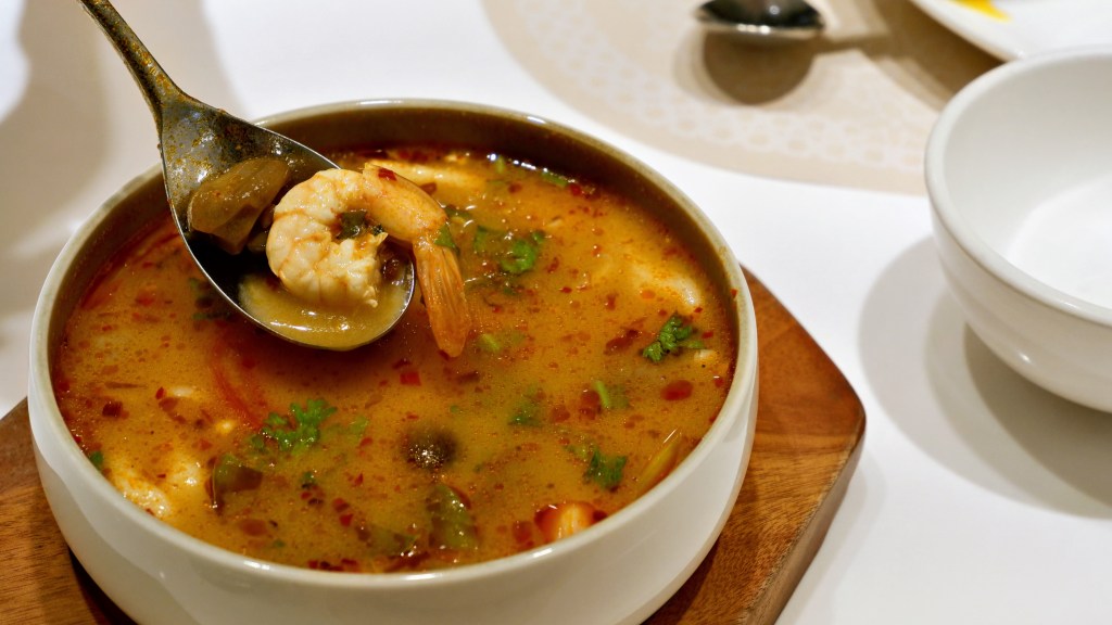 這款湯品也是因為「We出國Thai食尚」的活動加$199就可以來一大碗道地的冬蔭蝦湯,喜歡重口味的朋友絕對不可以錯過!先說蝦子很多且已經剝殼,超級貼心,整碗湯裡也有滿滿的菇菇,不過也有用來提味的香料葉菜,那不可以吃喔~湯品口味辣酸鹹一體,就是有夠泰。