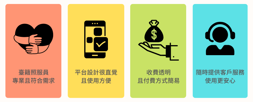 - 線上媒合平台:日前有幾家以線上媒合的方式,以科技的方式協助找尋合適看護,不過多數需要服務費,且部分估算下來,費用很驚人!