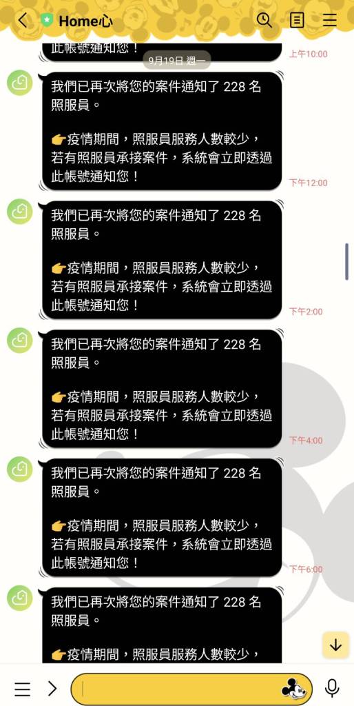 這個時期真的蠻懷疑人生的,LINE通知會不停跳出它為您通知了幾位照服員,一開始會很期待,過幾天開始心灰意冷,都沒甚麼進展。