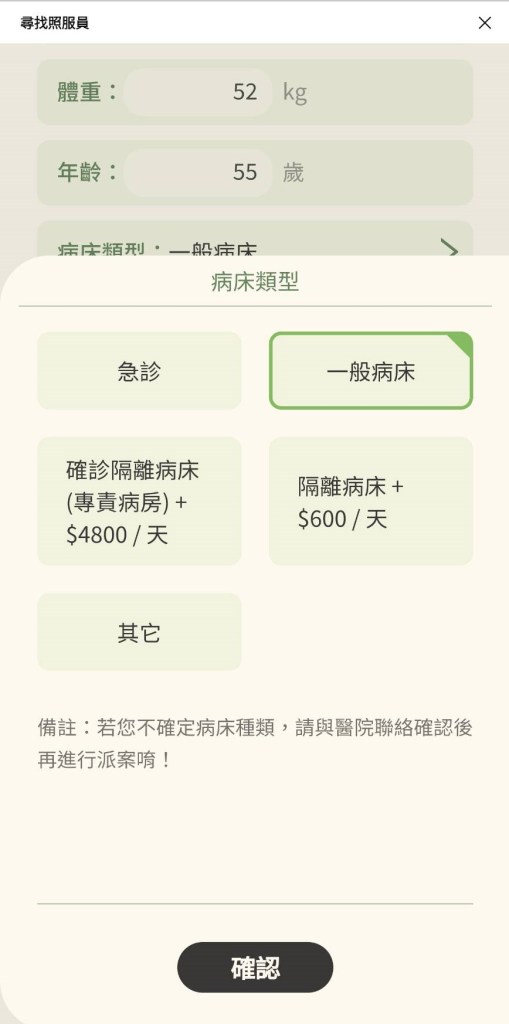 病床類型:有可能要再加額外費用,尤其是確診病房肯定是最昂貴的!畢竟冒著被感染的風險,只能說願意做的看護也不容易啊。