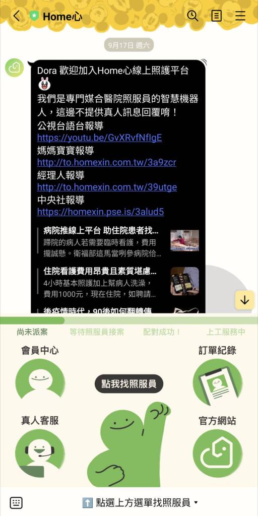 說到這邊,當時心慌慌的感覺記憶猶新啊!也多虧這次經驗,我要直接來大推特推我由衷感謝、最後讓我成功媒合到「好看護」的新科技—《Home心》