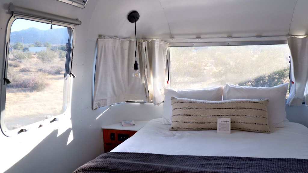我們這次入住的是Classic Airstream Suite房型,號稱「露營車界的勞斯萊斯」Airstream露營車就這樣坐落在沙漠裡、被山圍繞著,當然也有怪可愛的約書亞樹跟仙人掌們相伴著,處處是驚喜;每台Airstream外也都有設置好的野炊區,整個環境安排地很完美。